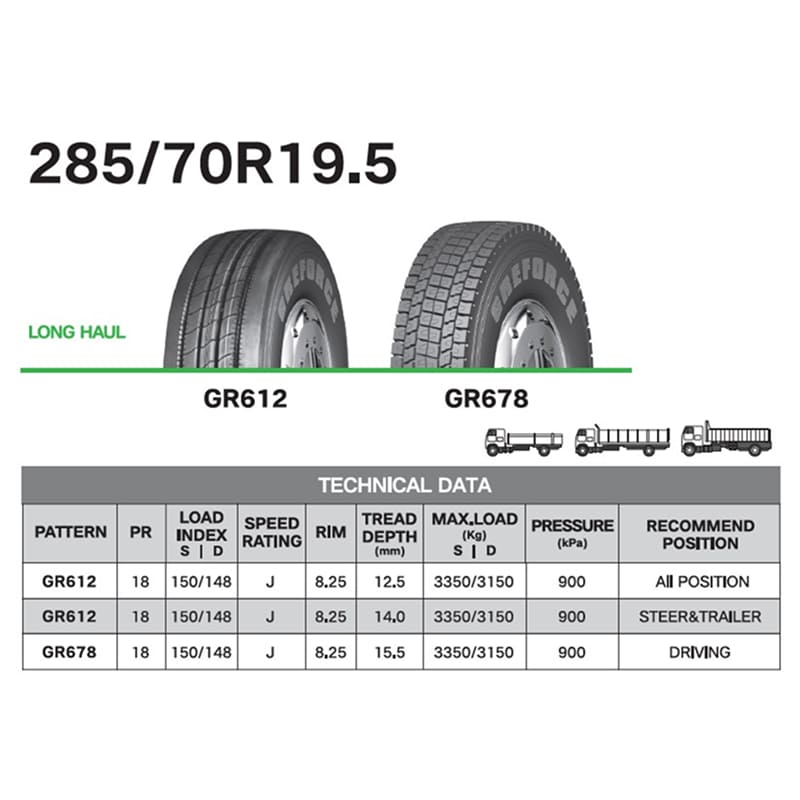 SKU: 285/70R19.5 18PR GR612